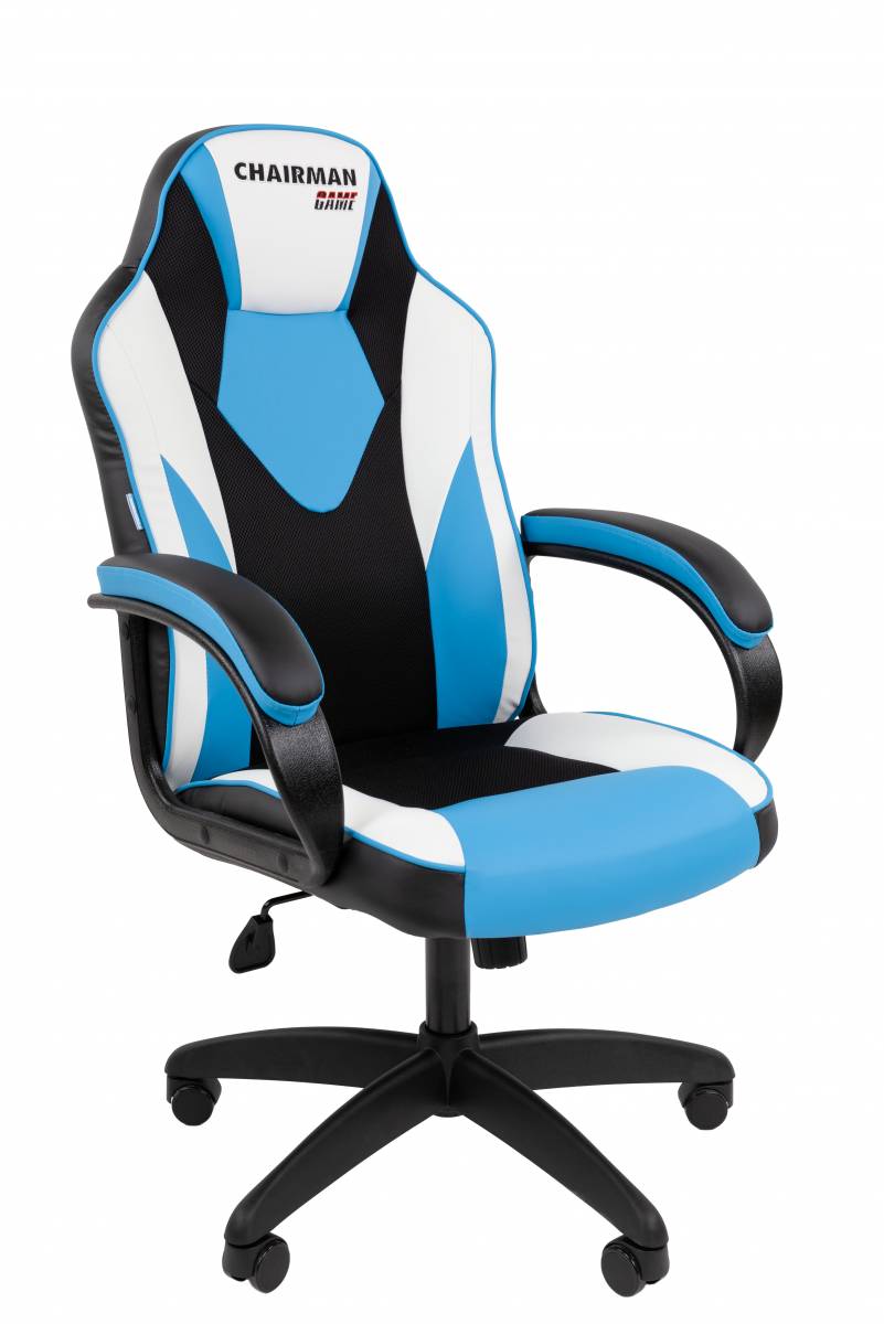 Офисное кресло Chairman Game 17 Россия экокожа черный/голубой/белый