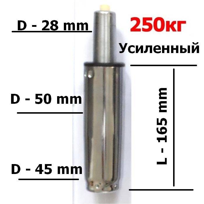 Из подобранных вариантов выберите газлифт нужного класса прочности. Если на кресле сидит ребенок или взрослый до 80 кг, можно купить газлифт прочностью до 120 кг. Если вес сидячего превышает 80 кг мы рекомендуем брать усиленный газлифт. Следует учитывать, если газлифт выдерживает до 120 кг, это не означает то, что на нем может сидеть человек весом в 120 кг. Есть еще вес кресла. Когда вы садитесь на кресло, нагрузка может превышать ваш вес. К тому же максимально допустимая нагрузка на газлифт определяется при правильном расположении нагрузки. Если нагрузка располагается под углом, газлифт быстрее выйдет из строя.