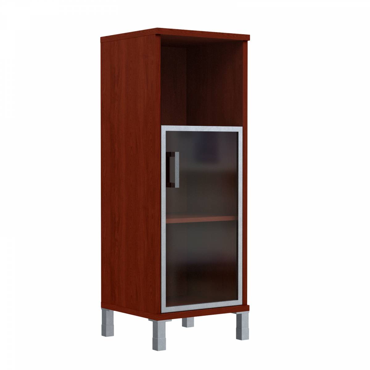 Шкаф-колонка средняя с малой стеклянной дверью в AL-рамке B 421.4(L) Бургунди 475х450х1286
