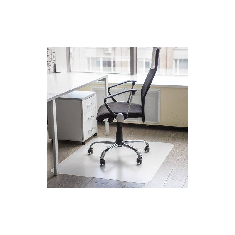 Является экологически чистым. Подходит для твердых покрытий — паркета, линолеума, ламината, керамической плитки. Пожаробезопасный (можно использовать на полу с подогревом). Прямоугольный коврик размером 100х120 см изготовлен из прозрачного полипропилена толщиной 1,2 мм, устойчив к механическим воздействиям.